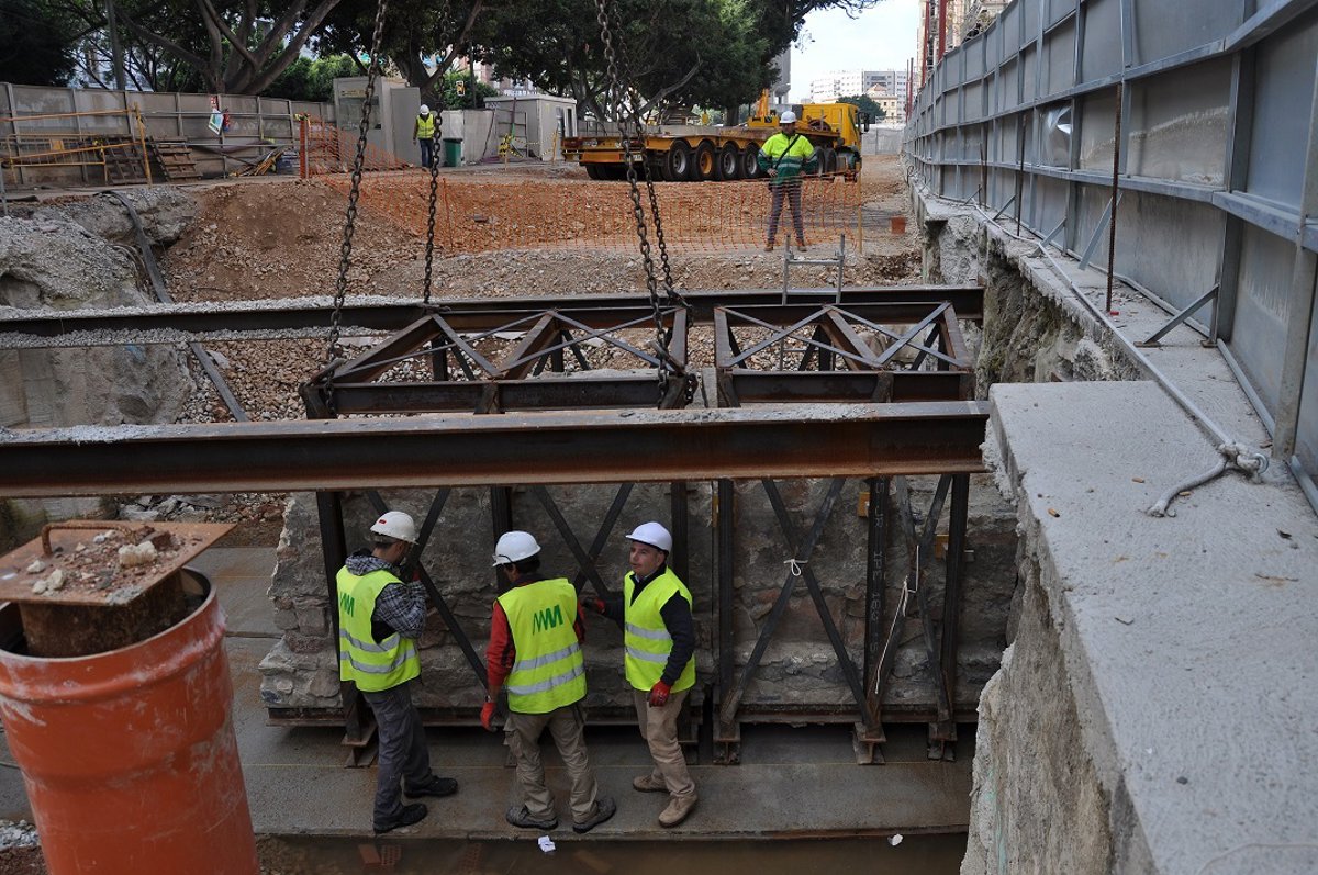 La Unión Temporal de Empresa (UTE) Atarazanas, que ejecuta las obras del tramo del metro de Málaga que discurre por el centro histórico, ha procedido este jueves a la restitución a su posición originaria del muro perimetral de la zona este del Fuerte de San Lorenzo, concretamente en el lateral norte de la Alameda Principal.