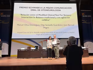 El facultativo especialista en Otorrinolaringología del Hospital Universitario Costa del Sol, Manuel Oliva, ha sido reconocido en el Congreso Nacional de ORL 2024 con un premio a la mejor Comunicación Oral por su trabajo 'Relación entre el Modified Clinical Test For Sensory Interaction in Balance Tradicional y con agitación cefálica'.