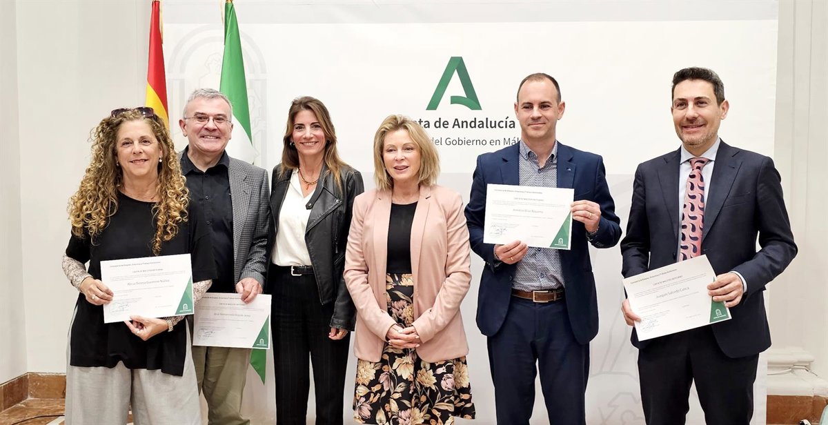 La delegada de Empleo, Empresa y Trabajo Autónomo de la Junta de Andalucía en Málaga, Carmen Sánchez Sierra, ha entregado este martes la Carta de Maestro a cuatro artesanos de la provincia, lo que eleva a ocho el total de artesanos en Málaga que cuentan con este reconocimiento, que es el máximo que otorga la Junta de Andalucía y que acredita que estos profesionales tienen los conocimientos y las prácticas adecuadas en el oficio artesanal.