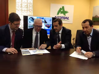Sánchez Maldonado, junto al delegado de la Junta de Andalucía en Málaga, José Luis Ruiz Espejo; el gerente de la sociedad Puerto Seco Antequera, y el consejero delegado de la empresa Acotral, Borja Torres, han visitado las instalaciones de esta última firma, promotora del proyecto del área logística, que contará con el apoyo de unas cinco empresas más.