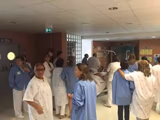 El simulacro ha comenzado alrededor de las 12.30 horas y ha durado poco más de 20 minutos. Así, y una vez activada la situación de emergencia, se han llevado a cabo acciones de control del foco, así como la evacuación y primeros auxilios de los pacientes ingresados y sus familiares. Para ello, se ha contado con la colaboración de unas 35 personas que, de forma voluntaria, se han prestado para simular tanto a pacientes como a familiares a los que había que evacuar.