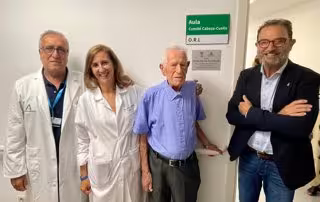 El servicio de otorrinolaringología del Hospital Regional Universitario de Málaga, junto a la Dirección Gerencia, han reconocido y agradecido en un homenaje la labor de Pedro Pascual Felip Quero por los casi 35 años como monitor voluntario con los pacientes laringectomizados, instalando una placa conmemorativa junto a la puerta de la sala de sesiones del comité de cabeza-cuello de otorrinolaringología.