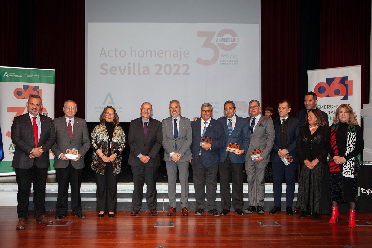 El Centro de Emergencias Sanitarias 061 ha celebrado un acto homenaje "al esfuerzo y dedicación" de profesionales del 061 de Sevilla que durante su carrera profesional han trabajado en el servicio de emergencias sanitarias y que han alcanzado la edad de jubilación. El homenaje ha estado presidido por el director general de Asistencia Sanitaria del Servicio Andaluz de Salud (SAS) de la Junta , Luis Martínez, y ha contado con la presencia de la delegada de Salud y Consumo, Regina Serrano y el director gerente del Centro de Emergencias Sanitarias 061 de Andalucía, Fernando Ayuso.