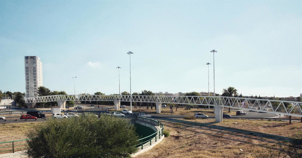 El proyecto en cuestión, financiado al 80 por ciento por el Fondo Europeo de Desarrollo Regional (Feder), contempla la instalación de una pasarela de 720 metros de longitud que sobrevuele el trazado de la autovía A-8057 y la rotonda desde la que arranca, enlazando el entorno de la estación de metro de Ciudad Expo, el centro comercial Metromar, la plaza de las Naciones y la cubierta del intercambiador de transportes, con la zona del acceso principal al parque PISA, todo ello en Mairena del Aljarafe.