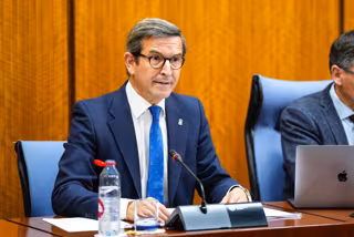 El consejero de Industria de la Junta de Andalucía, Jorge Paradela, en la comisión parlamentaria del 26 de marzo de 2025. - JOAQUIN CORCHERO / PARLAMENTO DE ANDALUCIA