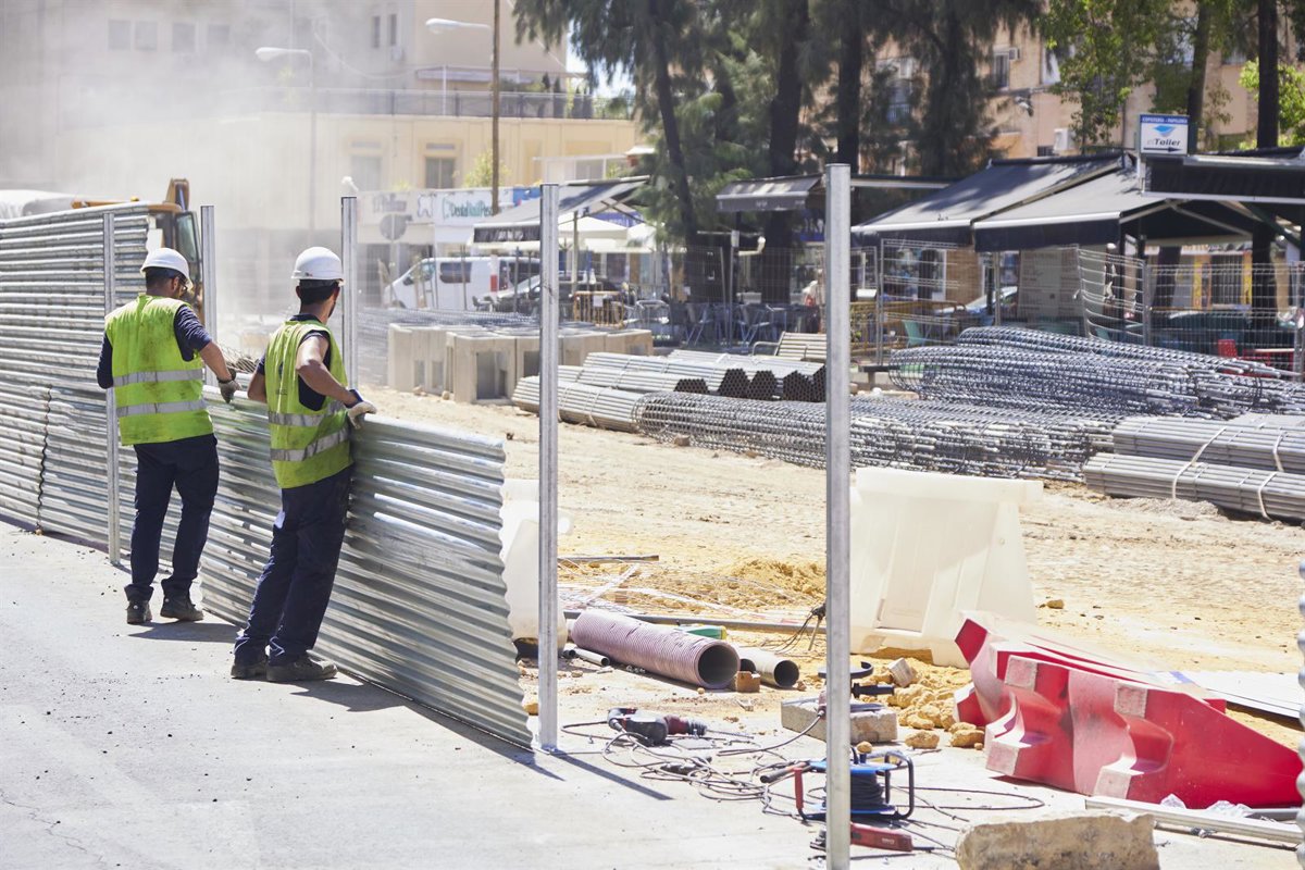 Archivo - Dos obreros colocan una pieza metálica del cajón de obra durante las obras de ampliación del metrocentro de San Bernardo a Santa Justa en el barrio de Nervión, a 29 de julio de 2022 en Sevilla (Andalucía, España) - Joaquin Corchero - Europa Press - Archivo