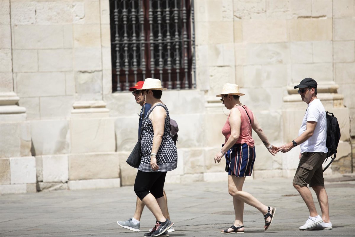 Archivo - Unos turistas con ropa veraniega y sombreros. A 28 de abril de 2023, en Sevilla (Andalucía, España). - María José López - Europa Press - Archivo