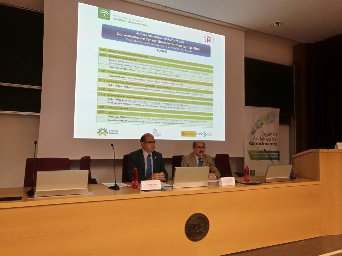 Según ha indicado la Consejería de Economía y Conocimiento en una nota, la cifra la ha dado a conocer esta mañana el director general de Investigación y Transferencia de Conocimiento de la Consejería de Economía, Manuel García León, quien ha inaugurado junto al vicerrector de Investigación de la Universidad de Sevilla (US), Julián Martínez, una jornada informativa sobre el programa ERC organizada por la Agencia Andaluza del Conocimiento y que ha tenido lugar en el Centro de Investigación Tecnológica e Innovación Citius de la US.