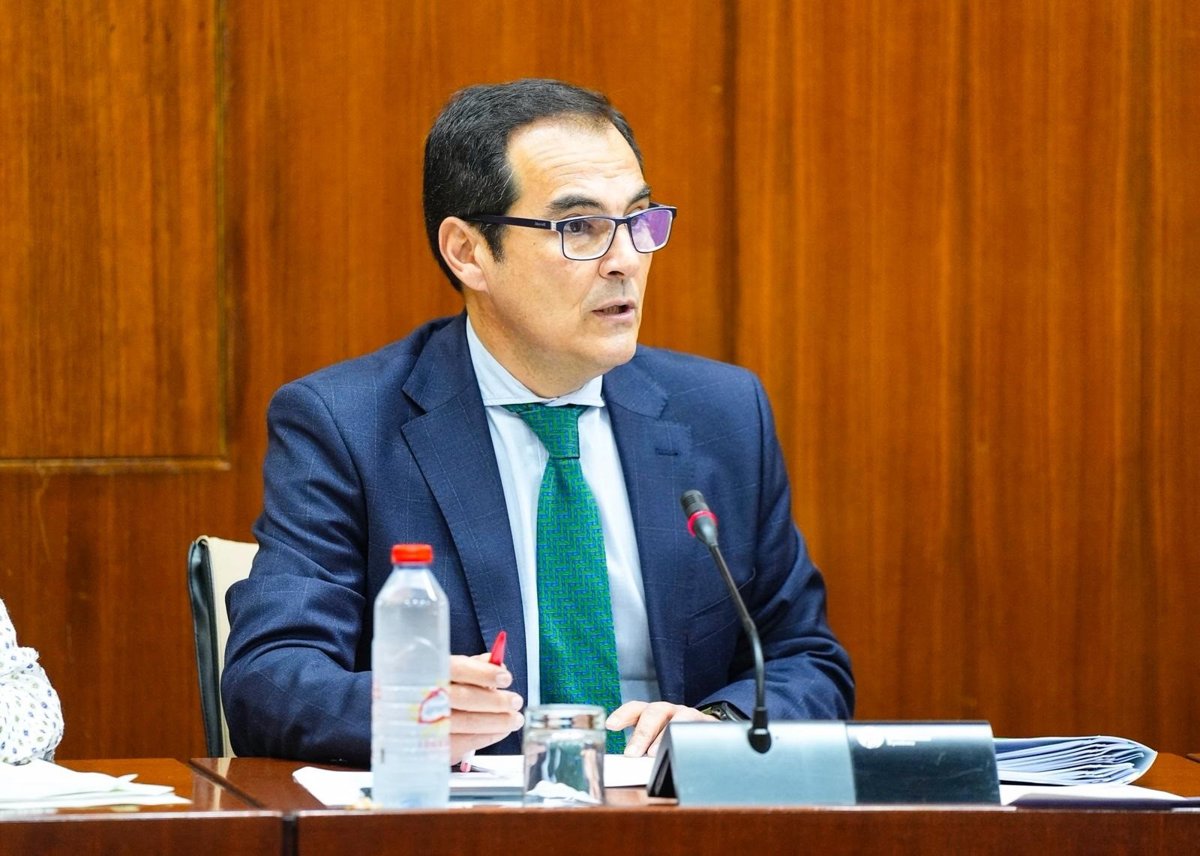 El consejero de Justicia, José Antonio Nieto, en la comisión parlamentaria del 10 de enero de 2026. - JOAQUIN CORCHERO / PARLAMENTO DE ANDALUCIA