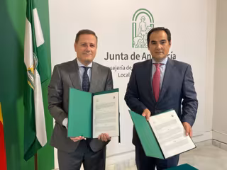 El consejero de Justicia, Administración Local y Función Pública, José Antonio Nieto, en la firma del convenio con el Consejo Andaluz de Colegios de Procuradores. - JUNTA DE ANDALUCÍA