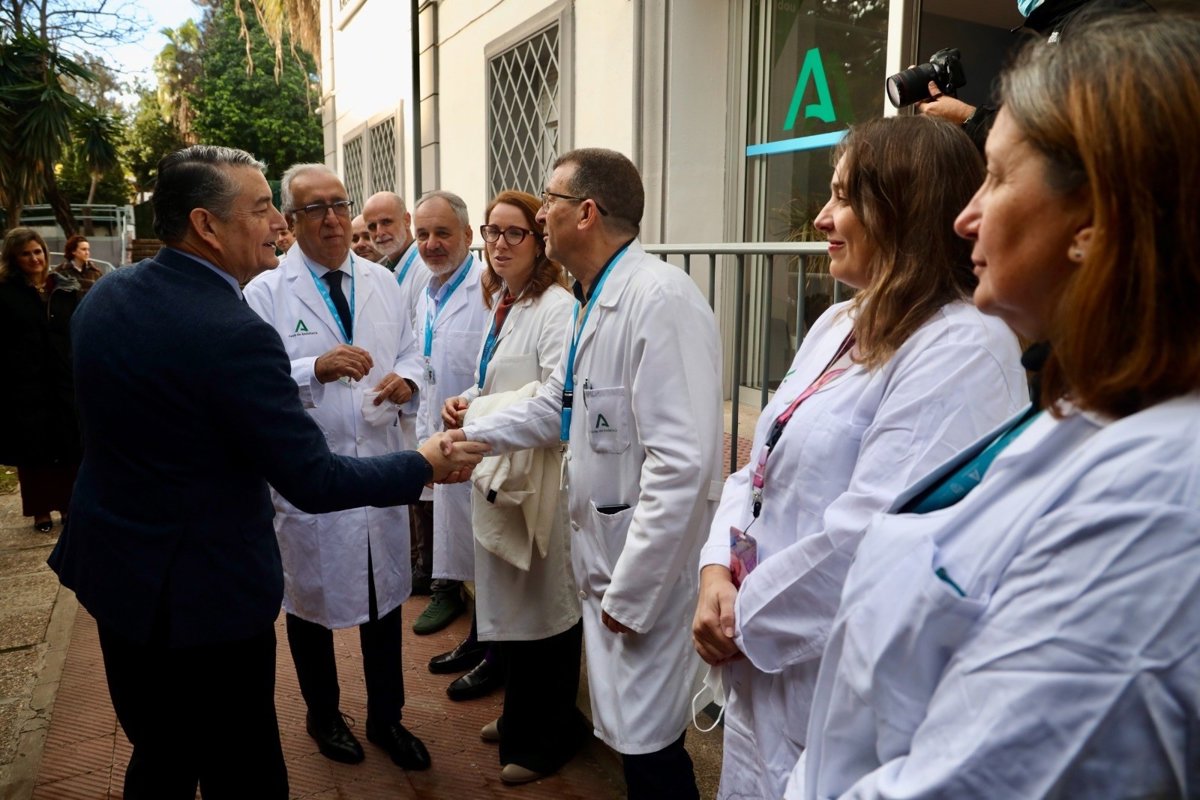 El consejero de Sanidad, Presidencia y Emergencias, Antonio Sanz, saludando a personal sanitario. - JUNTA DE ANDALUCIA