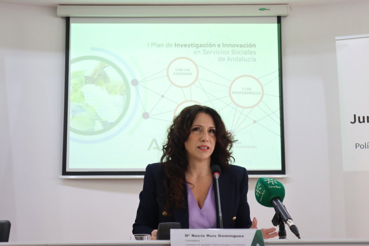 La consejera de Igualdad, Políticas Sociales y Conciliación, Rocío Ruiz, ha presentado el I Plan de Investigación e Innovación en Servicios Sociales de Andalucía 2021-2025 que tiene como objetivo "avanzar en la eficacia y mejora continua" de las prestaciones a la ciudadanía, "prevenir" las necesidades sociales y mejorar los recursos destinados.