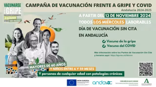 La Consejería de Salud y Consumo, a través de la Dirección General de Salud Pública y Ordenación Farmacéutica y el Servicio Andaluz de Salud, comenzará a vacunar sin cita a la población diana todos los miércoles a partir del día 13 en los 623 puntos habilitados, de los cuales 212 puntos incluyen horario de tarde.