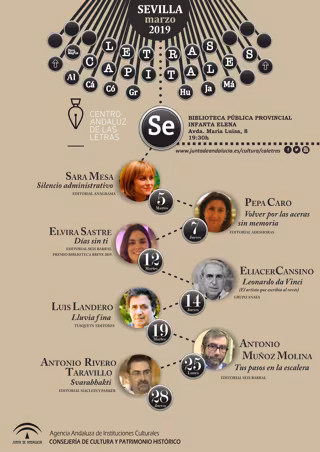 El Centro Andaluz de las Letras (CAL) de la Consejería de Cultura y Patrimonio Histórico organiza para el mes de marzo en Sevilla siete presentaciones de libros con autores de la talla de Antonio Muñoz Molina, Luis Landero o Elvira Sastre, enmarcadas dentro del ciclo literario 'Letras capitales'. Todas las actividades tendrán lugar en la Biblioteca Pública Provincial Infanta Elena a las 19,30.
