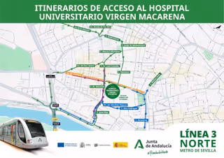 La Consejería de Fomento, Articulación del Territorio y Vivienda pondrá en marcha a partir del próximo jueves, 5 de marzo una reordenación del tráfico rodado y peatonal en el entorno del Hospital Universitario Virgen Macarena ante el avance de las obras de la Línea 3 Norte del Metro de Sevilla. La reordenación se ha planificado en coordinación con el Ayuntamiento de Sevilla, Tussam, Lipasam, el Hospital Universitario Virgen Macarena y la Facultad de Medicina.