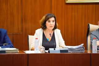 La consejera de Empleo, Empresa y Trabajo Autónomo, Rocío Blanco, en comisión parlamentaria. - JOAQUÍN CORCHERO - PARLAMENTO DE ANDALUCÍA