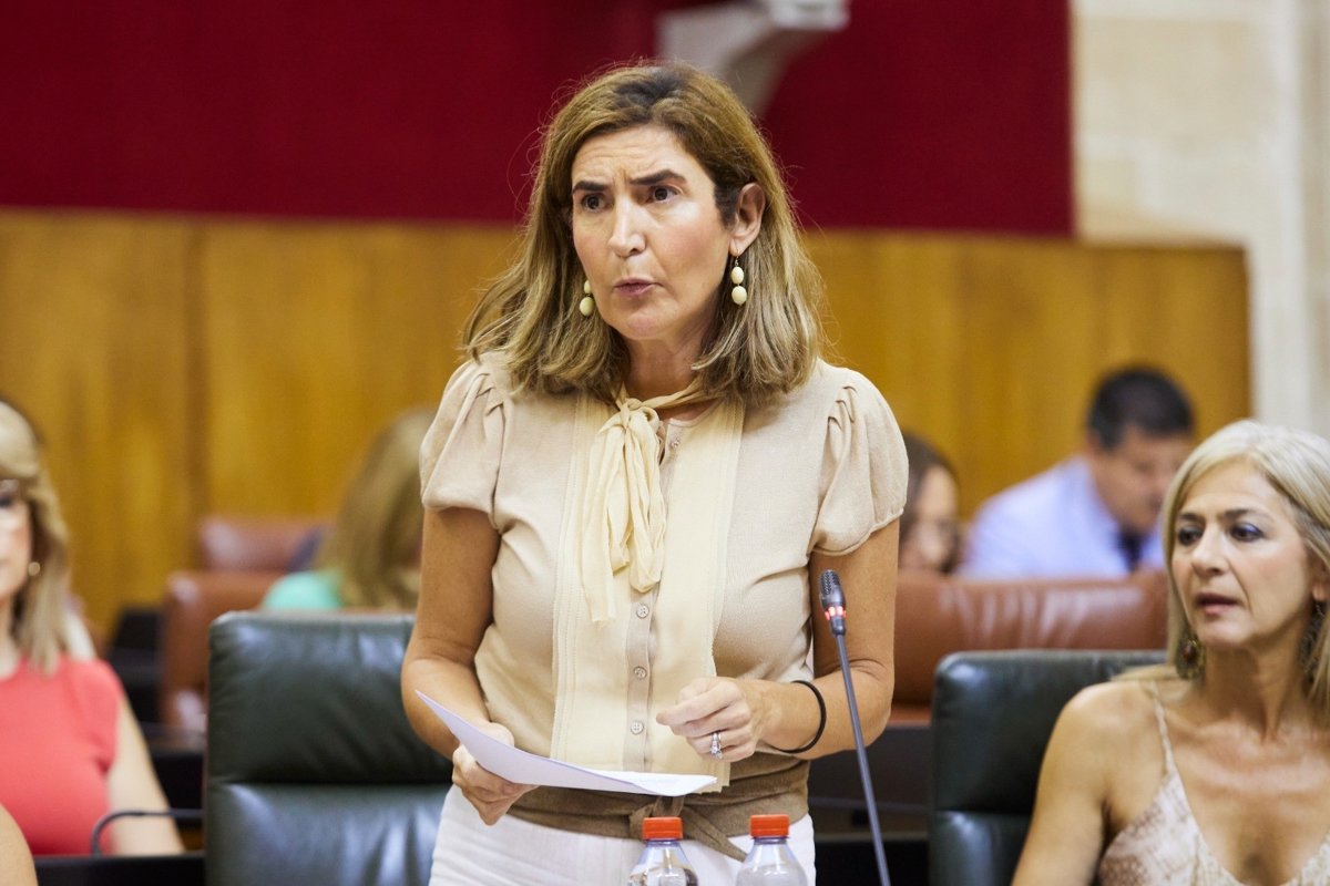 La consejera de Empleo, Empresa y Trabajo Autónomo, Rocío Blanco, durante la sesión de control al Gobierno en el Parlamento andaluz. - JOAQUÍN CORCHERO / PARLAMENTO DE ANDALUCÍA