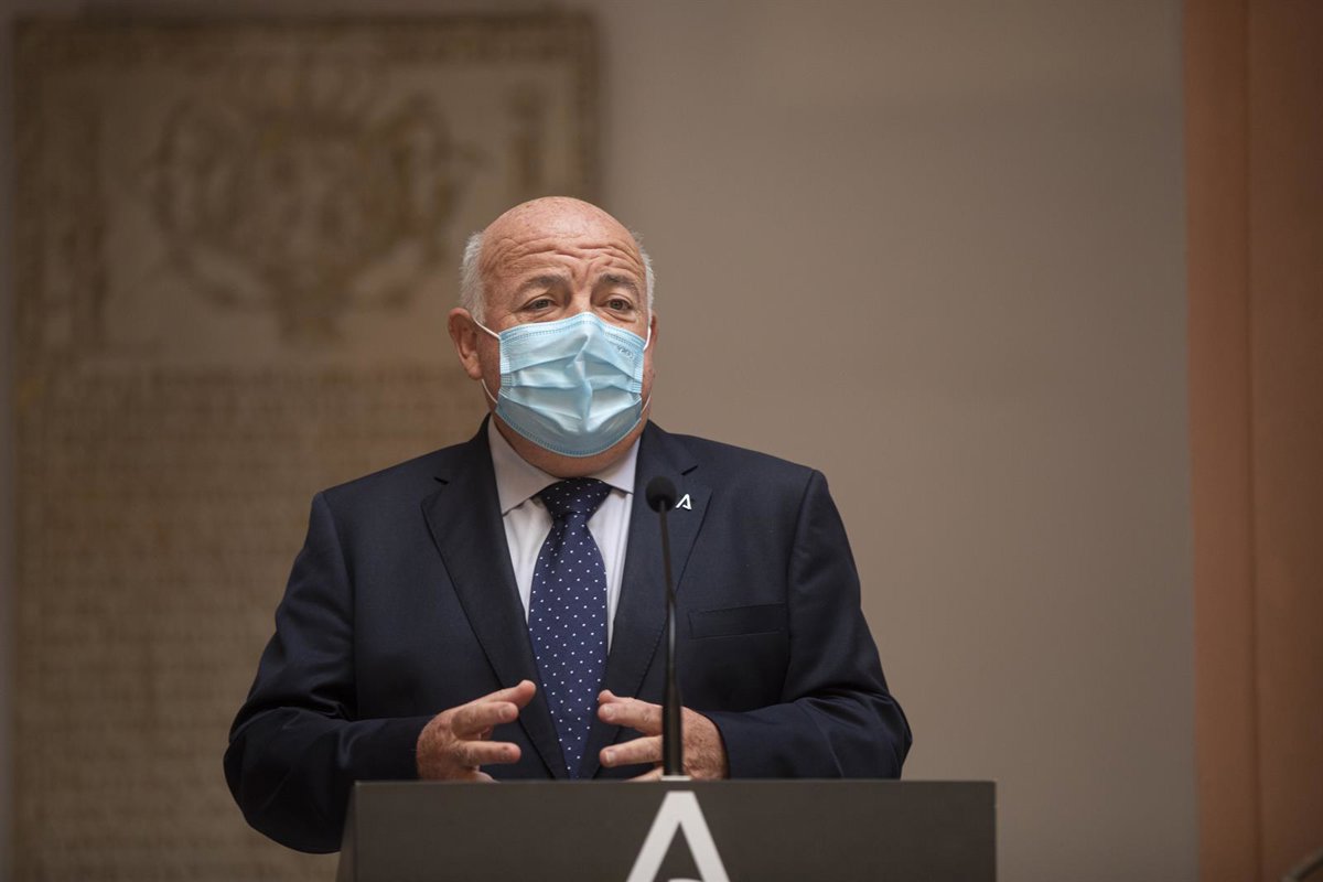 El consejero de Salud y Familias, Jesús Aguirre, durante su intervención en la firma de un protocolo de actuación entre la Consejería de Salud y Familias y los laboratorios farmacéuticos Rovi. En el palacio de San Telmo, Sevilla, 23 de noviembre de 2020. - María José López - Europa Press