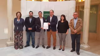 El alcalde de la localidad, Fernando Soriano; la profesora de Historia y Arqueología Medieval Magdalena Valor; el profesor de Historia Antigua Alfonso Álvarez-Ossorio; y el hermano mayor de la Hermandad de Cuatrovitas, Pedro Moreno, han anunciado la iniciativa esta mañana en la Casa de la Provincia de la Diputación de Sevilla.