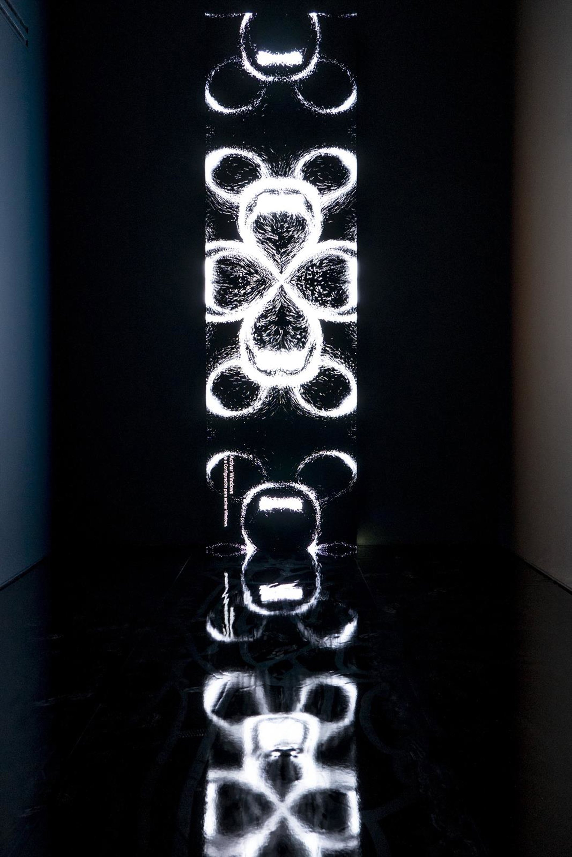 Comisariada por Yolanda Torrubia, 'El eterno presente' ofrece una visión global de la trayectoria de Vallés a través de instalaciones, piezas lumínicas, trabajos pictóricos realizados con programación informática y obras activadas por la presencia del espectador.