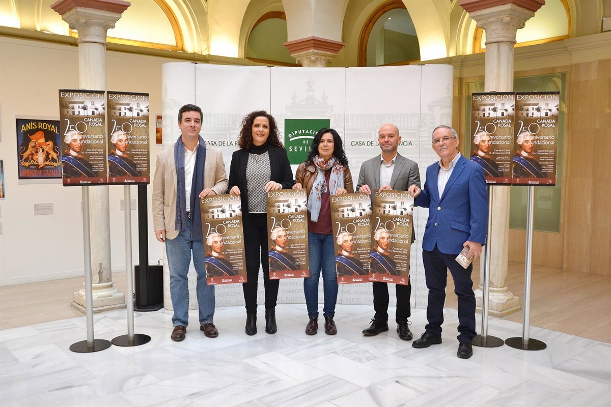 El alcalde de Cañada Rosal, Rodrigo Rodríguez Hans, acompañado por el delegado territorial de Cultura, Turismo y Deporte de la Junta en Sevilla, José Manuel Girela de la Fuente, y la diputada provincial de Cultura, Rocío Sutil, ha presentado en la Casa de la Provincia la exposición conmemorativa del 250 aniversario de la fundación de Cañada Rosal en 1769.