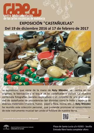 El Centro de Documentación de las Artes Escénicas de Andalucía (Cdaea), ubicado en la antigua iglesia de Santa Lucía de Sevilla, muestra una exposición sobre castañuelas donde se explican los orígenes, la fabricación y el toque de las castañuelas o palillos.