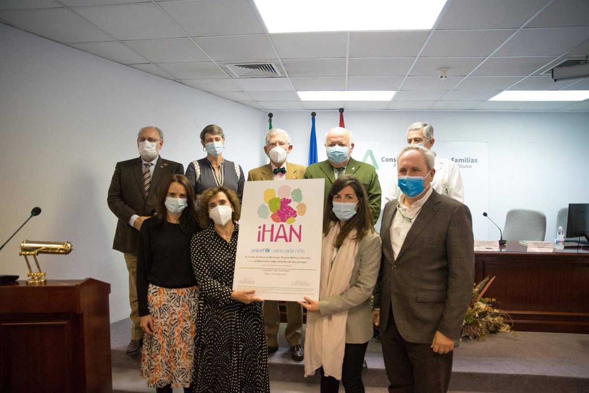 El acto de entrega del galardón de acreditación IHAN, celebrado en Osuna (Sevilla) recientemente, contó con la presencia del consejero de Salud y Familias, Jesús Aguirre; el gerente del Servicio Andaluz de Salud (SAS), Miguel Ángel Guzmán; el presidente honorífico de la Unicef, Manuel Moro; la coordinadora de Formación y miembro del Comité ejecutivo de la IHAN, Ana Isabel Jiménez, el gerente del Área sanitaria de Osuna, Celso Ortiz, la matrona de atención primaria en el centro de salud de Marchena y asesora internacional de lactancia materna Ibclc, María Dolores Sevillano, así como otros miembros del equipo médico del centro premiado, según ha informado este domingo la Junta en una nota.