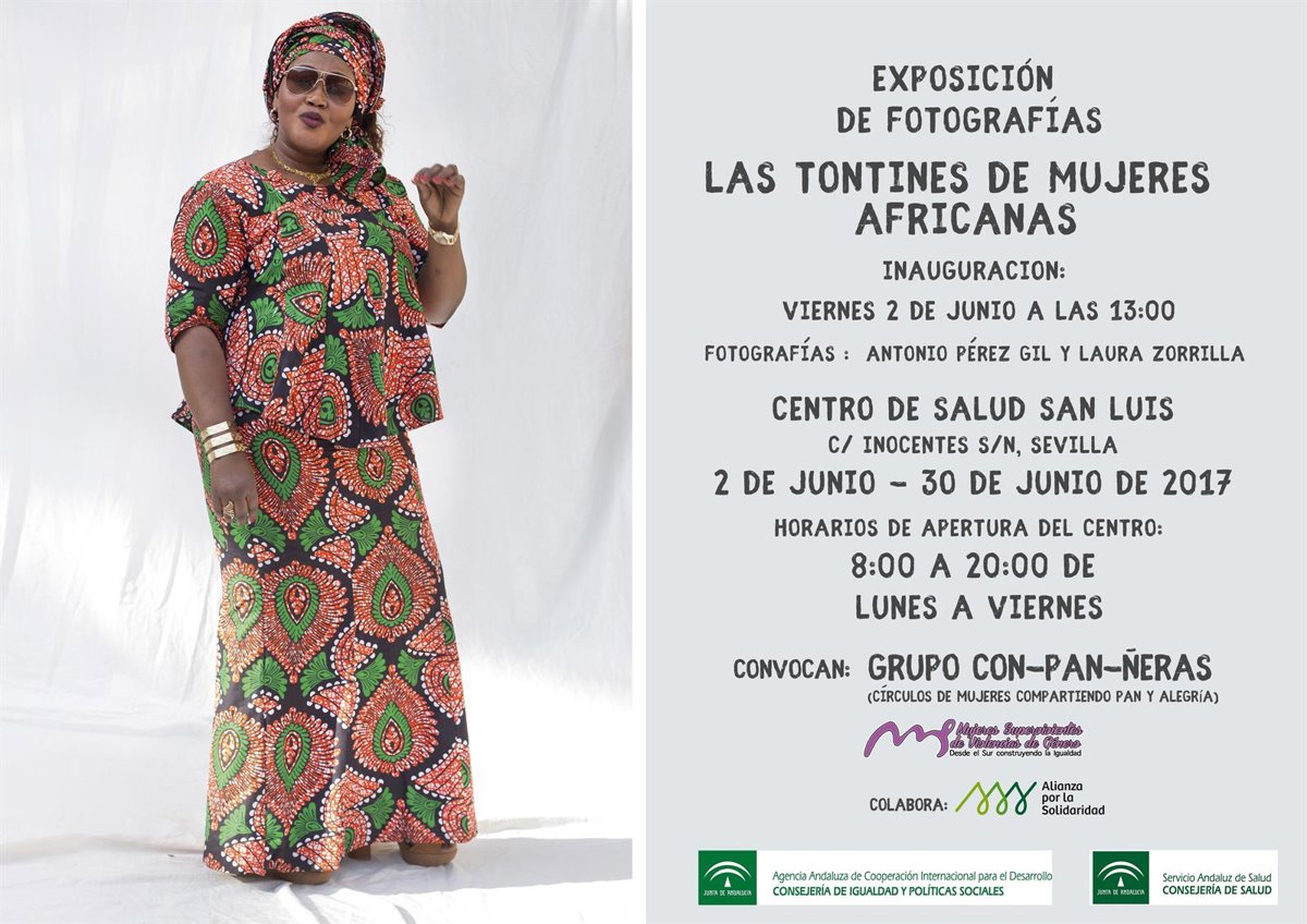 El Distrito Sanitario de Atención Primaria de Sevilla junto a la agrupación de colectivos de mujeres ConPAÑeras, entre las que destaca la organización Mujeres Supervivientes de Violencias de Género y el apoyo de Alianza por la Solidaridad, ha organizado la exposición de fotografías 'Las Tontines de Mujeres Africanas' en el centro de salud de San Luis se ubica en calle Inocentes.