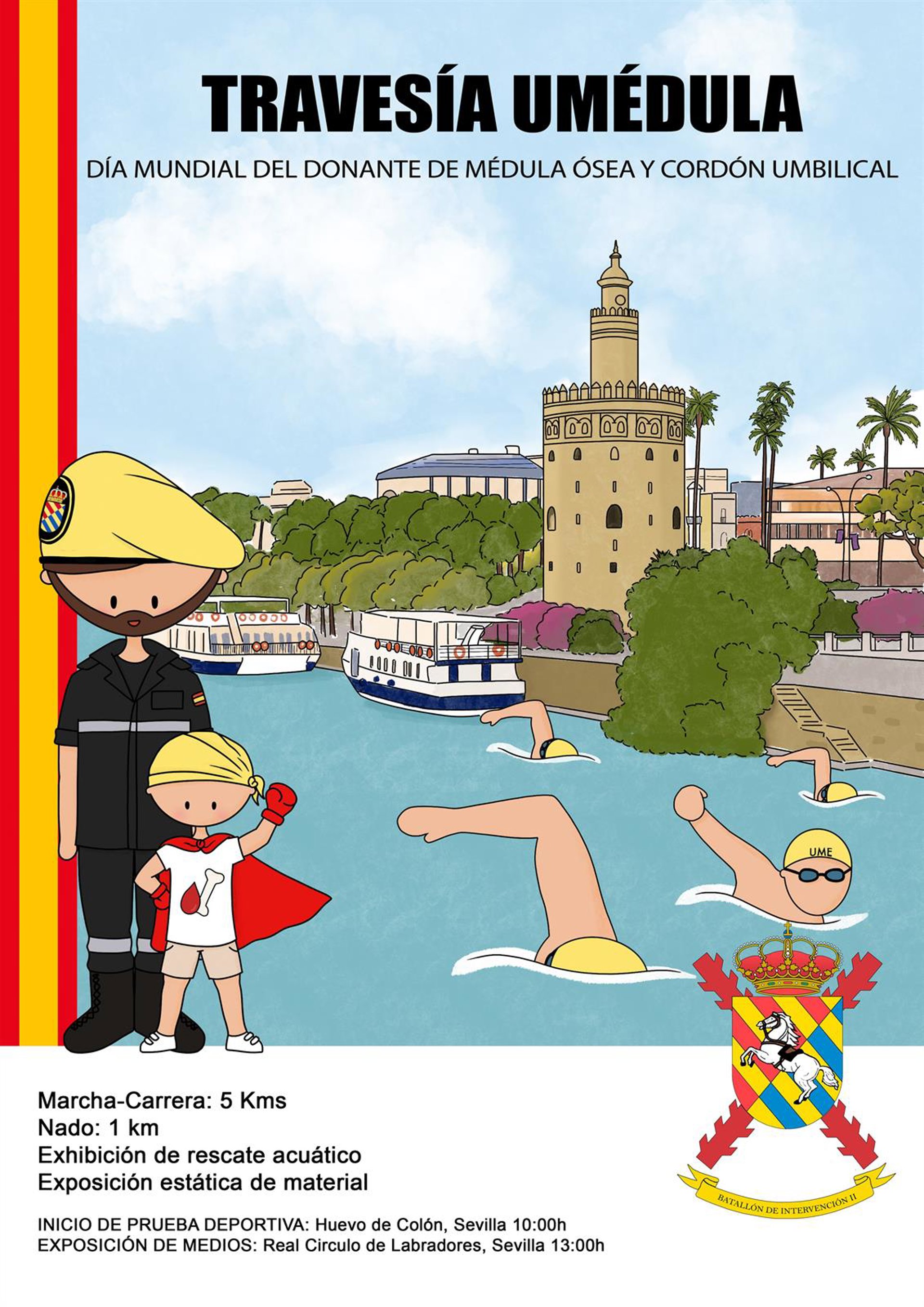 El próximo sábado 17 de septiembre se conmemora el Día Mundial del Donante de Médula y el Centro de Transfusión, Tejidos y Células de Sevilla se suma a los actos organizados por la Unidad Militar de Emergencias. Este año hay novedades. No solo recorrerán a nado un tramo del Guadalquivir, también marcharán corriendo desde el Huevo de Colón hasta el Muelle de la Sal.