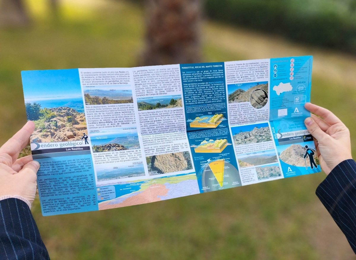 En el reverso de cada uno de los folletos hay un mapa de la zona con el recorrido concreto del sendero y una cartografía geológica y en soporte digital, los senderos se pueden descargar en cualquiera de estos enlaces: http://www.juntadeandalucia.es/medioambiente/geodiversidad_g... y https://lajunta.es/423bd.