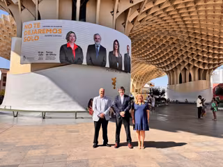 Integrantes del Colegios de Abogados de Sevilla presentan la camapaña para reconocer al Turno de Oficio en Las Setas de Sevilla. - ICAS