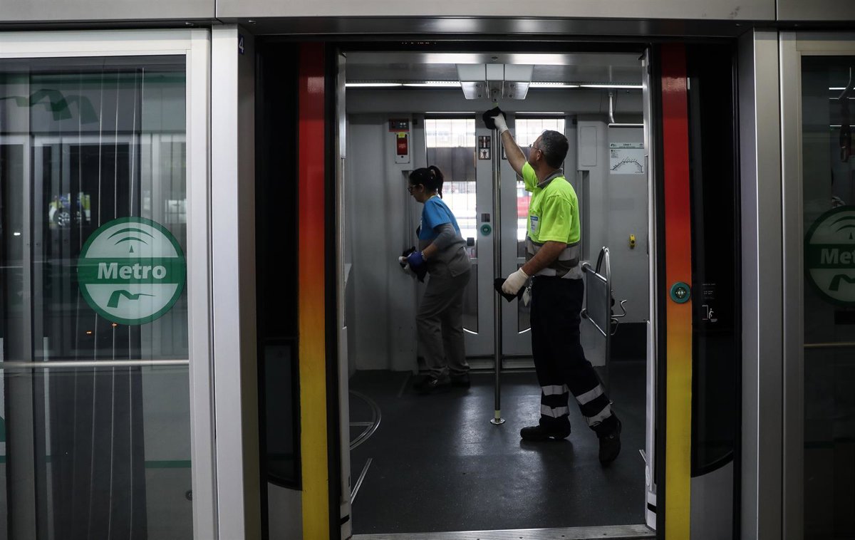 Un operario realizando labores especiales de limpieza en el metro de Sevilla - MARÍA JOSÉ LÓPEZ-EUROPA PRESS
