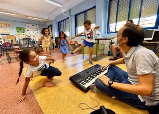 La Fundación Barenboim-Said viene colaborando con las escuelas de verano de la Asociación Entre Amigos desde 2015 con un taller de música y expresión corporal para niños de tres a ocho años. Las sesiones, a las que asisten en torno a 80 menores, las realiza un especialista en educación infantil y se imparten entre el cinco y el 30 de julio en los colegios Andalucía, Manuel Altolaguirre y Paz y Amistad.