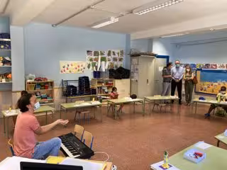 El comisionado para el Polígono Sur, Jaime Bretón, y la directora gerente de la Fundación Barenboim-Said, Muriel Páez, visitan el taller de música de la escuela de verano de Entre Amigos - COMISIONADO POLÍGONO SUR