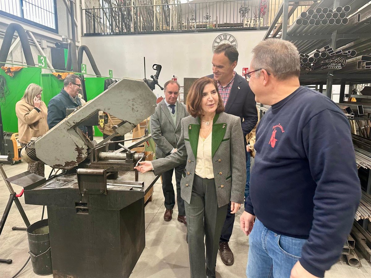 La consejera de Empleo, Empresa y Trabajo Autónomo, Rocío Blanco, ha visitado el Centro de Formación Profesional para el Empleo Forja Lebrija-Escuela del Hierro, que impulsa el Maestro Artesano, Juan José Gómez Delgado, una iniciativa por la que resultó finalista en los XVII Premios Nacionales de Artesanía.