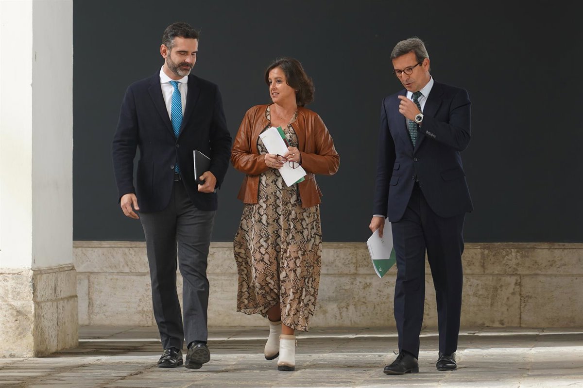 El consejero de Sostenibilidad, Medio Ambiente y Economía Azul y portavoz del Gobierno, Ramón Fernández-Pacheco (i), junto a la consejera de Salud y Consumo, Catalina García; y el consejero de Política Industrial y Energía, Jorge Paradela (d) - Eduardo Briones - Europa Press