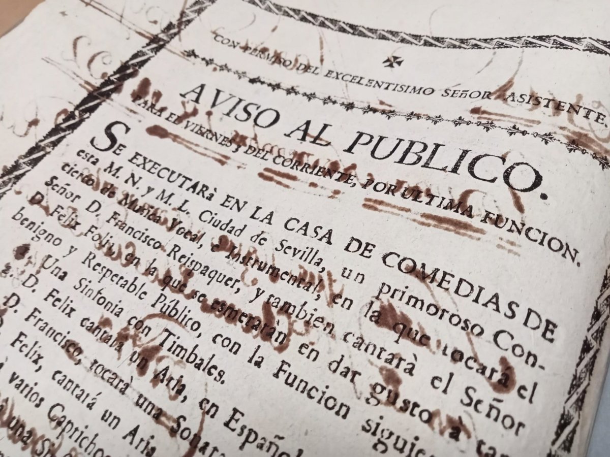 En concreto, se exhibe el pleito del Ayuntamiento de Sevilla contra Ana Sciomeri, empresaria y dueña del Teatro Cómico de Sevilla entre 1795 y 1833, sobre que no se representen comedias en días de fiesta, correspondiente al fondo documental de la Real Audiencia de Sevilla, años 1816-1817.
