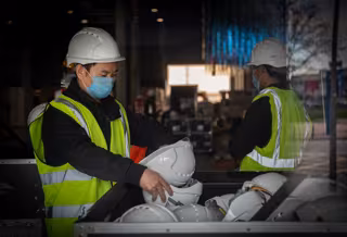 Archivo - Trabajador con casco y chaleco reflectante, imagen de archivo - David Zorrakino - Europa Press - Archivo