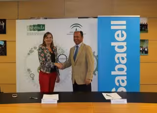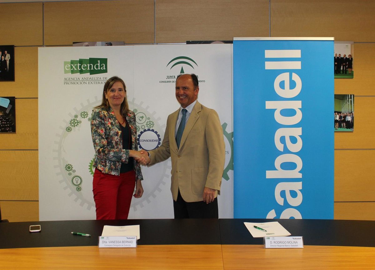 Extenda-Agencia Andaluza de Promoción Exterior, entidad dependiente de la Consejería de Economía y Conocimiento, y Banco Sabadell han firmado un convenio para promover servicios financieros que faciliten el acceso a la internacionalización a autónomos y pymes andaluzas.