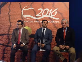 El consejero ha estado acompañado durante la presentación, además de por el alcalde de La Rinconada, Javier Fernández de los Ríos, por los presidentes de las federaciones Española y Andaluza de Tenis, Fernando Fernández-Ladreda y Juan Miguel Navas, respectivamente, y por el delegado territorial de Cultura, Turismo y Deporte de Sevilla, Manuel González Lora, entre otras autoridades.