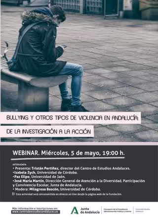 La Fundación Centro de Estudios Andaluces (Centra), adscrita a la Consejería de la Presidencia, Administración Pública e Interior, ha organizado el webinar 'Bullying y otros tipos de violencia en Andalucía. De la investigación a la acción', en el marco de la conmemoración, el 2 de mayo, del Día Mundial contra el Bullying o el Acoso Escolar.