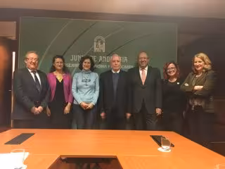 Además de los presidentes de ambas entidades, a la firma del convenio marco en la sede de la Consejería de Economía y Conocimiento en Sevilla han asistido el secretario general de Universidades, Manuel Torralbo; el secretario del Patronato de la Fundación Descubre, Francisco Solís; la directora de la Fundación, Teresa Cruz; la vicepresidenta primera de la RSME, Mercedes Siles Molina, y Antonio Durán Guardeño, miembro del comité de premios RSME-FBBVA.