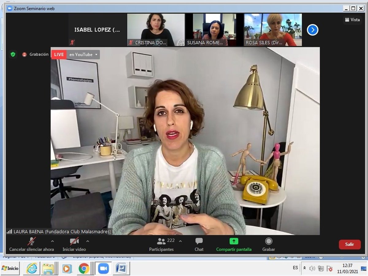 La Consejería de Empleo, Formación y Trabajo Autónomo, a través de Andalucía Emprende, ha celebrado el webinar 'Emprendimiento y Conciliación' de la mano de Laura Baena, emprendedora malagueña y fundadora del 'Club de las Malasmadres' --comunidad que nace en 2014 para reivindicar un espacio propio para las mujeres y madres y luchar por la conciliación laboral y familiar--, quien ha reivindicado la conciliación para "emprender por talento y no por necesidad".