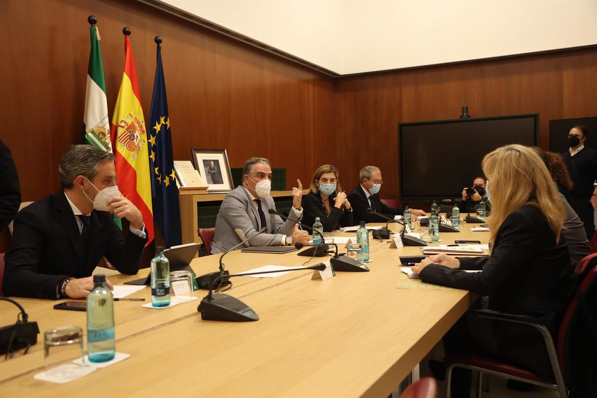 Por parte del Gobierno andaluz han participado en la reunión el consejero de la Presidencia, Administración Pública e Interior, Elías Bendodo; la consejera de Empleo, Formación y Trabajo Autónomo, Rocío Blanco; el consejero de Hacienda y Financiación Europea, Juan Bravo; y el consejero de Transformación Económica, Industria, Conocimiento y Universidades, Rogelio Velasco.