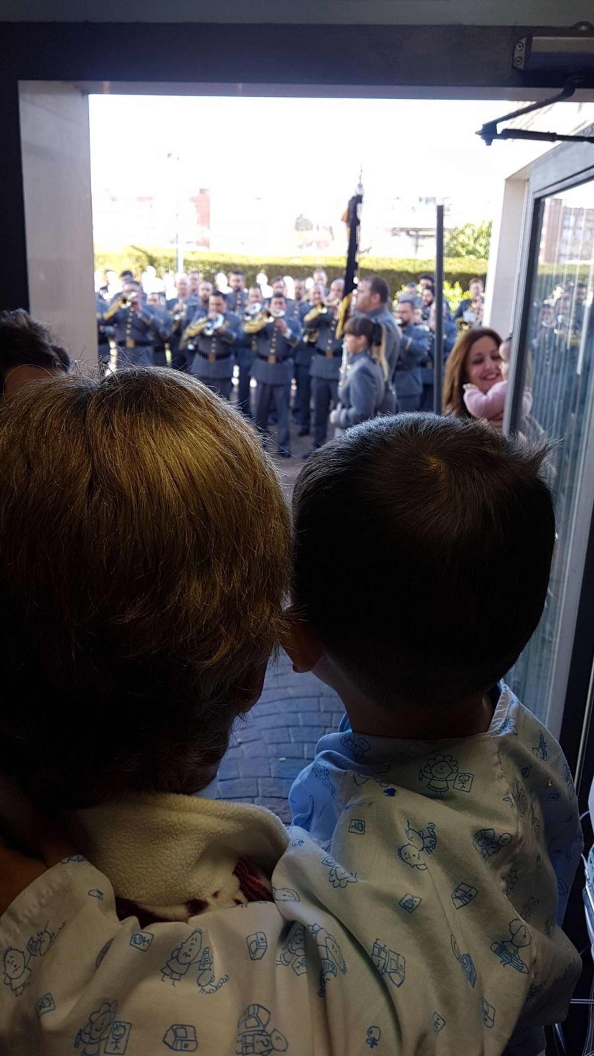 El Hospital Infantil del Virgen del Rocío de Sevilla ha recibido este domingo la visita de la Banda de Cornetas y Tambores Esencia, gracias a la implicación del grupo 'Lluvia de Estrellas', integrado por un grupo de profesionales del hospital.