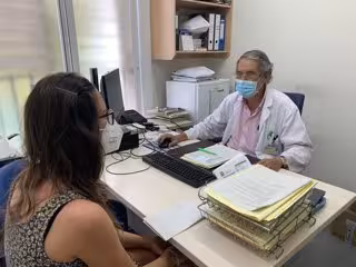 El doctor Vigueras atiende a una paciente en su consulta - HUVM