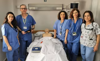 Profesionales sanitarios, en una formación simulada de emergencias obstétricas en parada cardiorrespiratoria. - HUV