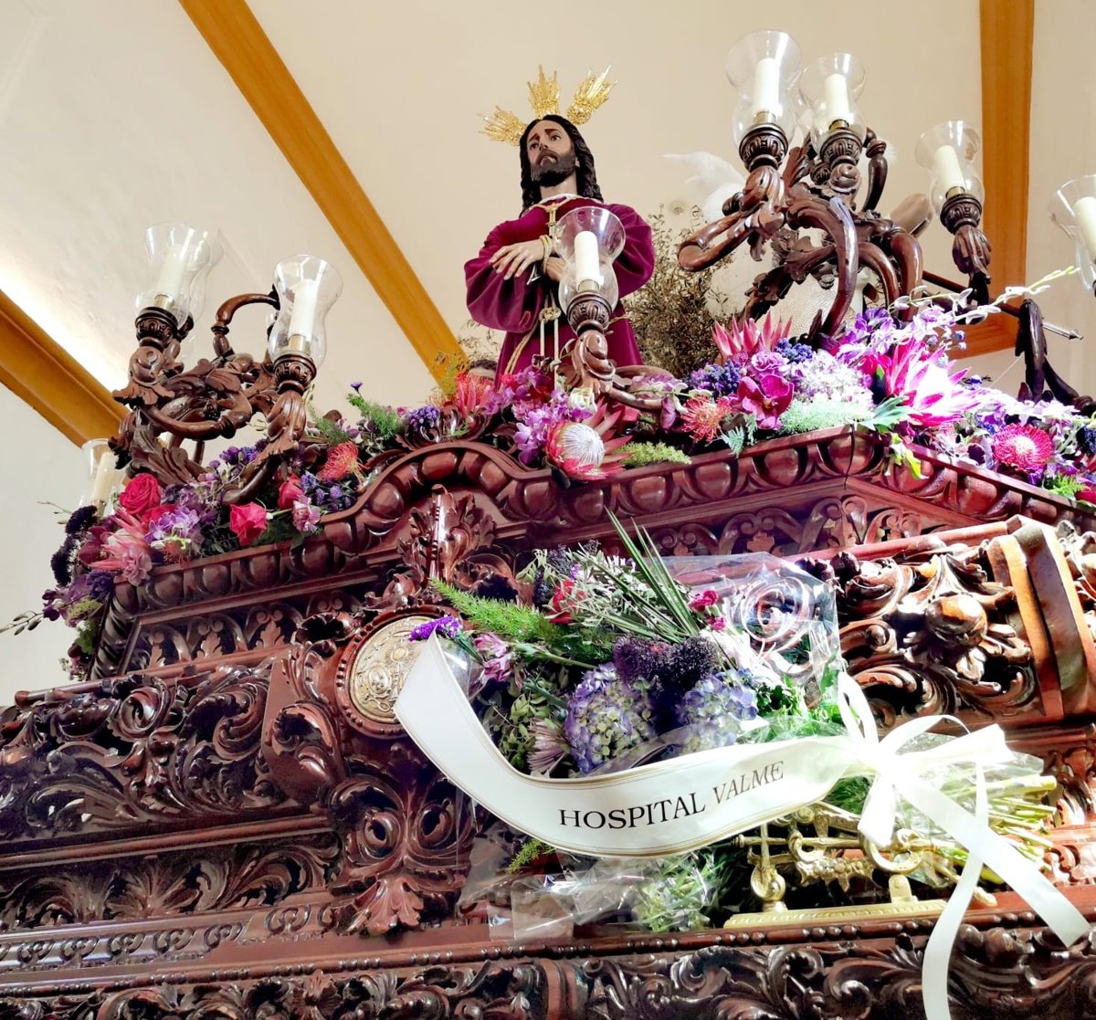 El Hospital Universitario de Valme de Sevilla ha llevado a cabo en la mañana de este viernes una ofrenda floral a los titulares de la Hermandad de Penitencia y Cofradía de Nazarenos de Nuestro Padre Jesús de la Salud y Remedios y María Santísima del Dulce Nombre en sus Dolores y Compasión de Bellavista.