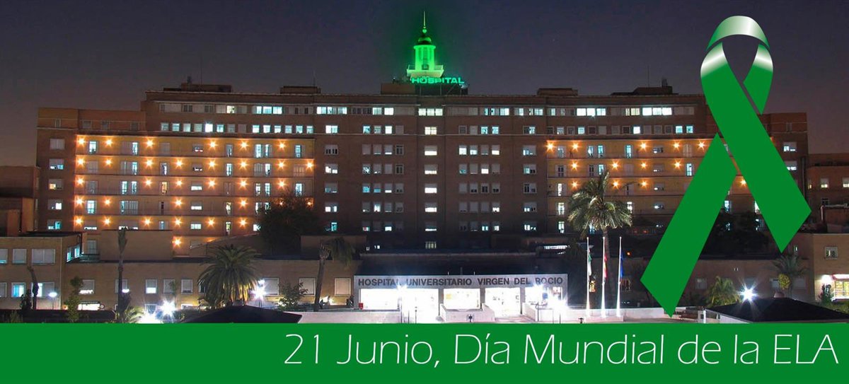 El minarete del Hospital Universitario Virgen del Rocío se iluminará este viernes noche de verde para acompañar a todos los pacientes, sus allegados y los profesionales que trabajan por mejorar el diagnóstico y la calidad de las personas con Esclerosis Lateral Amiotrófica (ELA), una de las patologías denominadas raras o poco frecuentes y se sumará de esta forma a la campaña #LuzporlaELA de sensibilización nacional, por la que se iluminarán con este color los edificios emblemáticos y fuentes de todas las ciudades españolas.