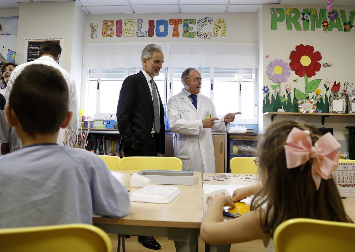 Aquilino Alonso también ha visitado la planta de hospitalización infantil del centro sanitario y su escuela hospitalaria, en la que casi 1.000 menores ingresados han recibido formación durante el curso 2015/2016. Asimismo, el titular de Salud ha conocido el funcionamiento del programa Diver, que se desarrolla en la Diveraula de este mismo centro hospitalario.